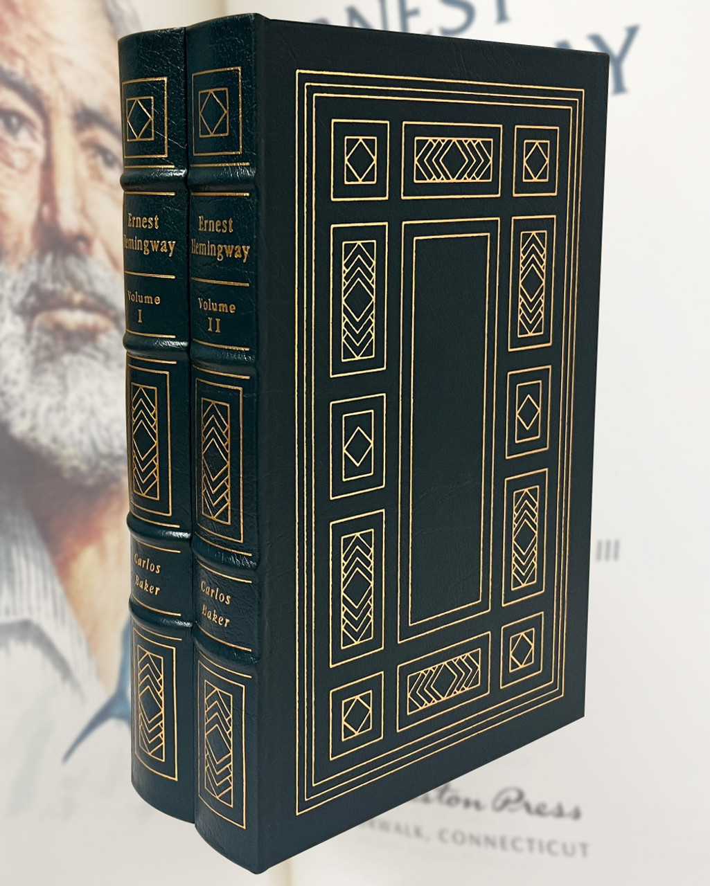 Easton Press, Norwalk CT. 1994 Carlos Baker "Ernest Hemingway: A Life Story" Limited Edition 2-Volume Matching Set. Collector's edition. The Library of Great Lives. Includes the original note card from the publisher. Each edition is luxuriously bound with full genuine leather.