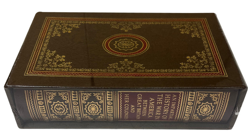 Easton Press 2015. "An Impartial History of the War in America Between Great Britain and Her Colonies, From Its Commencement to the End of the Year 1779" Slipcased Deluxe Limited Edition of 800. Full genuine leather. Fold-out map. Housed in a fabric covered slipcase custom designed for storing and displaying this exceptional volume. Sealed without any flaws. Facsimile/replica/copy/reproduction.