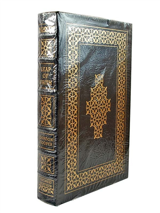 Easton Press. Norwalk, CT. 2000. Gordon Cooper "Leap of Faith: An Astronaut's Journey Into the Unknown" Signed Limited Edition. A luxurious leather bound collectible. Personally signed by Gordon Cooper on a special title page. COA by the publisher.
