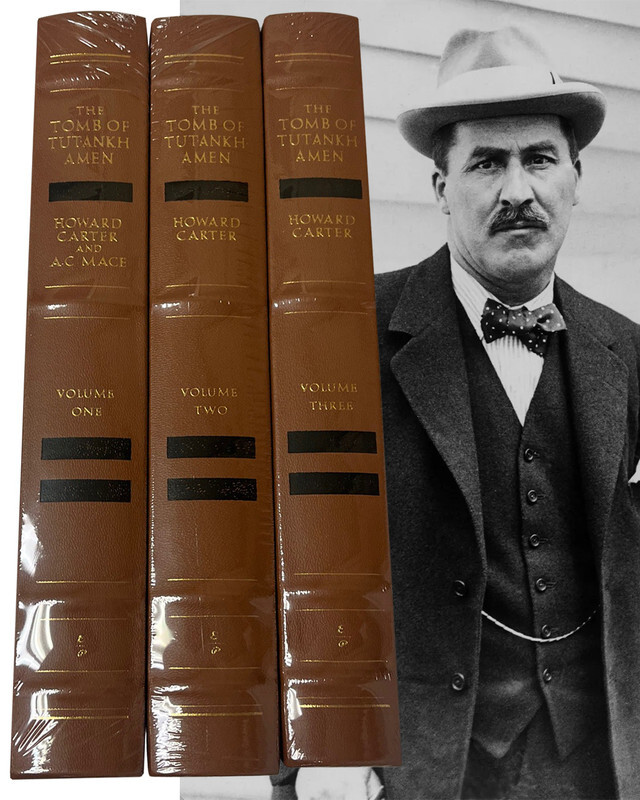 Norwalk, CT. Easton Press. Howard Carter and A.C. Mace (Associate Curator, Metropolitan Museum of Art, New York. "The Tomb of Tutankhamen". Discovered by the late Earl of Carnarvon and Howard Carter. Three volume complete matching set. Luxuriously bound in full genuine leather with 22kt gold accents. The set features hubbed spines, distinctive cover designs, and beautiful illustrations. This collection is now Out Of Print by the publisher. Very Fine, sealed.