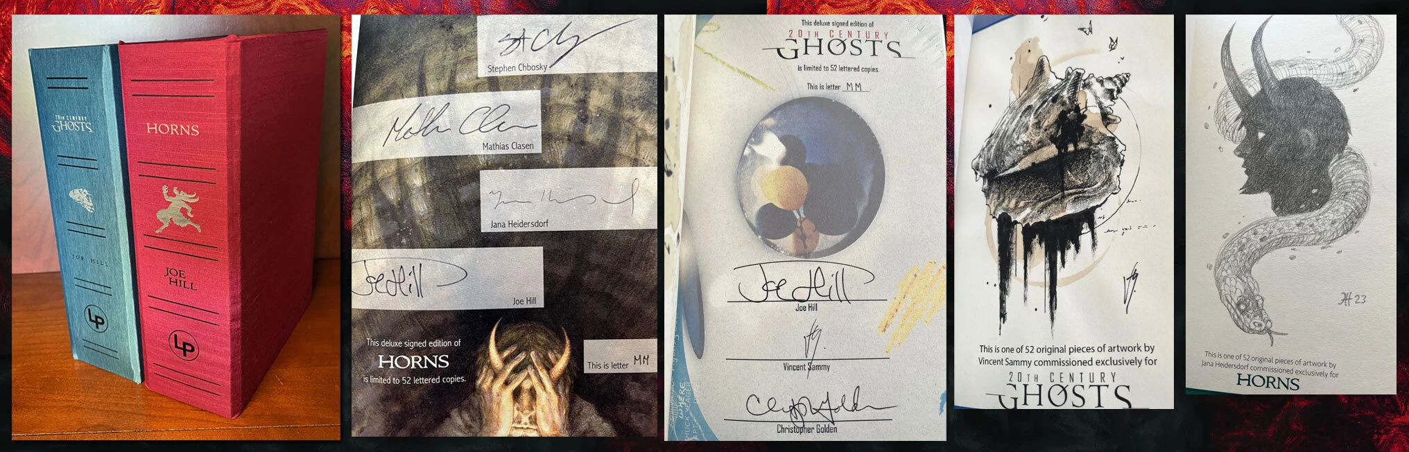 Exclusive: Matching Signed Lettered Set ("MM") of Joe Hill's "20th Century Ghosts" and "Horns" by Lividian Publications.