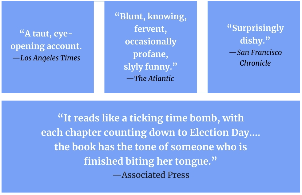 Political junkies will dig the play by play…candid, salty (incoming f-bombs!) and even a little dishy. ? San Francisco Chronicle
