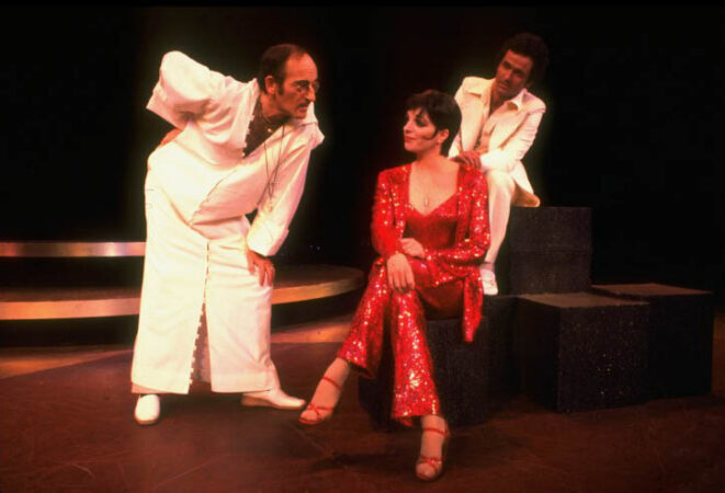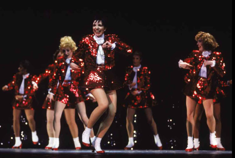 • Signature Costumes: Liza often wore red sequined ensembles designed by Halston, notably a red jumpsuit and jacket during her Tony Award-winning turn in The Act (1977), and a red sequined dress with a high slit in the film New York, New York (1977).