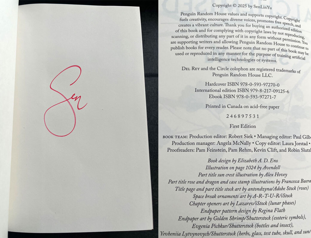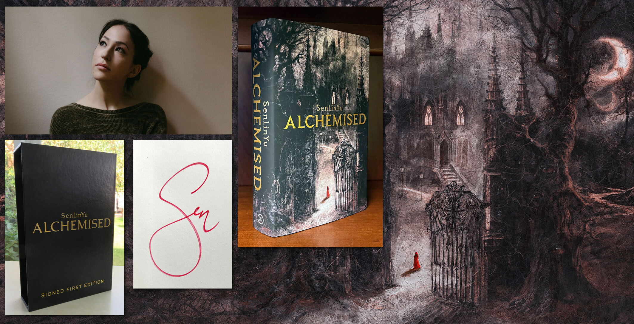 Del Rey Books (Sept 2025). SenLinYu "Alchemised". US Signed First Edition, First Printing. Personally signed by SenLinYu directly onto the FFEP (First Free End Paper) of the book. This edition is now OUT OF PRINT from the publisher and sold out everywhere. Hardcover book with dust-jacket. Limited Slipcased Edition of only 25 copies with hand-numbered Certificate of Authenticity. Archival acid-free protection. As new, sealed without any flaws.