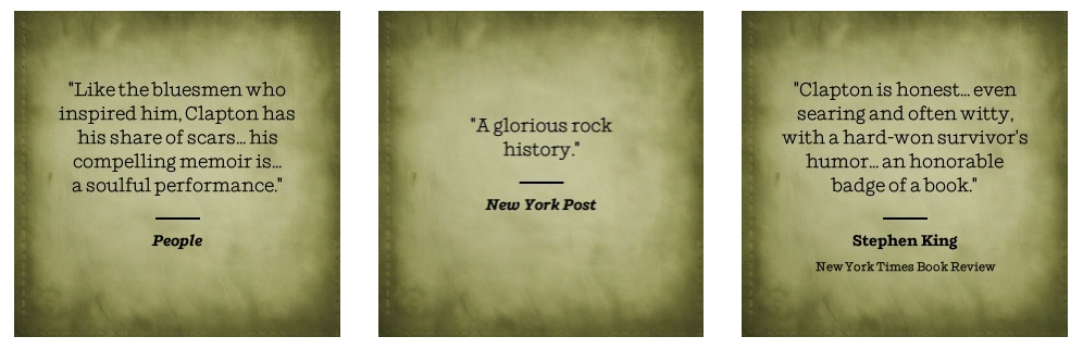 “Strong stuff. Clapton reveals its author’s journey to self-acceptance and manhood. Anyone who cares about the man and his music will want to take the trip with him.”
