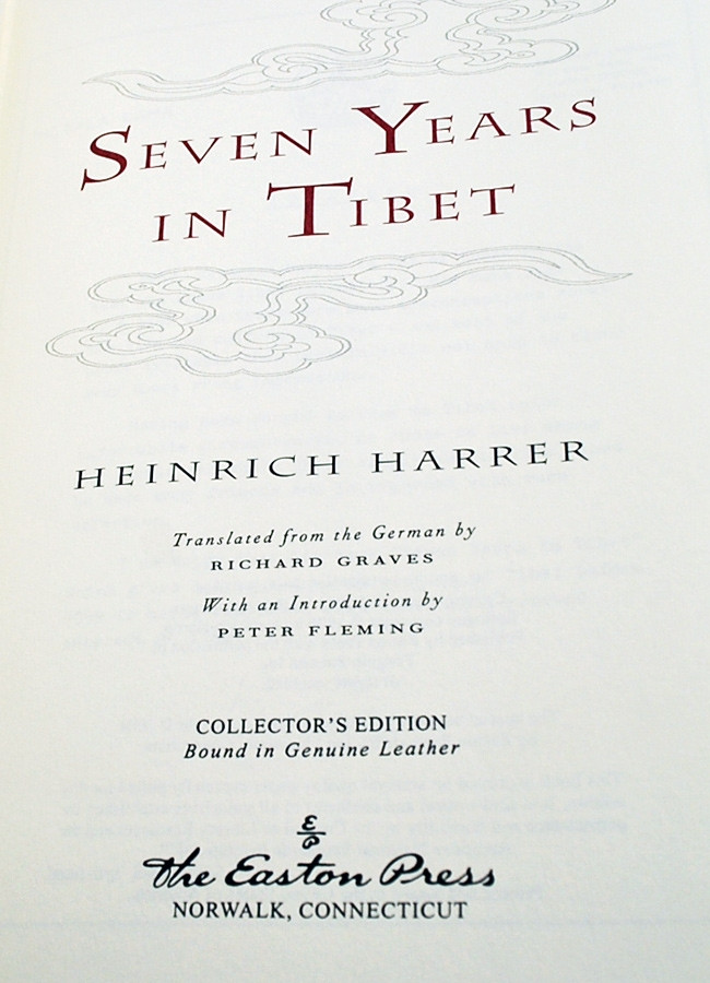 Easton Press. Norwalk, CT. 2004. Heinrich Harrer "Seven Years In Tibet". Signed Limited First Edition. Full genuine leather. Certificate of Authenticity from Easton Press guarantees the signature. Includes collector's notes. No dust-jacket as issued. Sealed without any flaws.