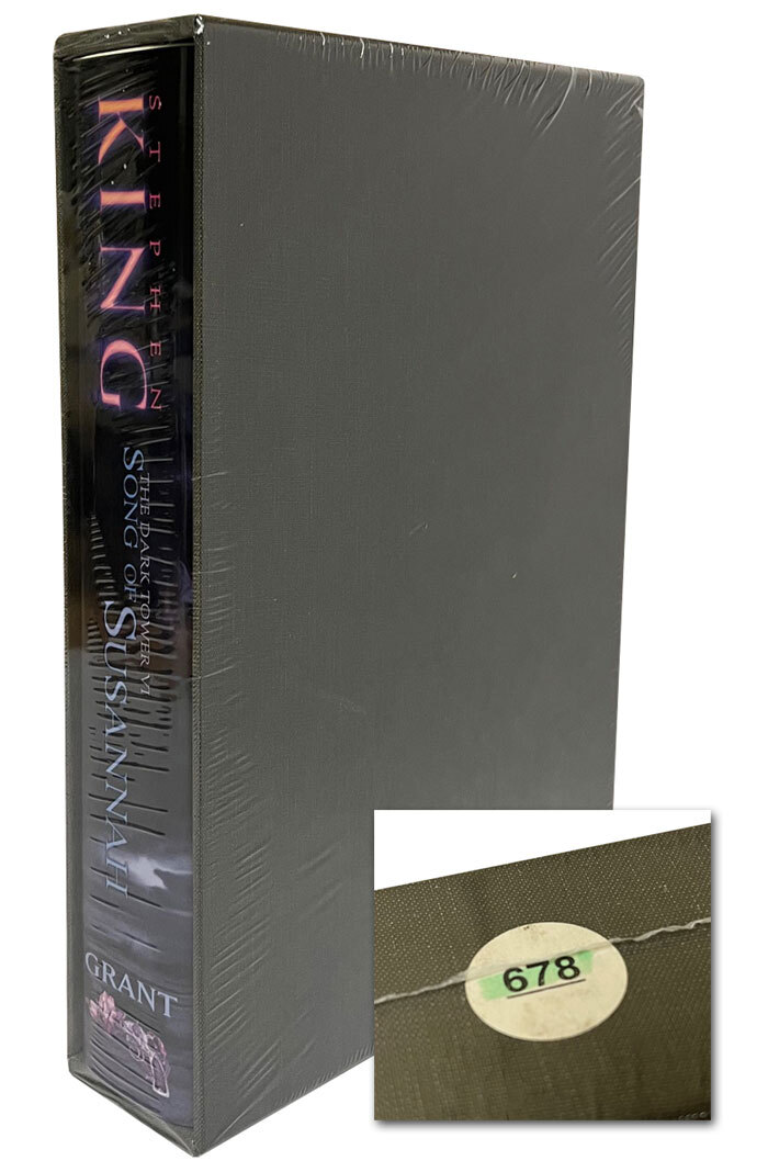 Donald M. Grant. 2004. Stephen King "The Dark Tower VI: Song of Susannah" Signed Limited Edition #8678 of 1,400. Limited edition of 1,400 slip-cased numbered copies, signed by Stephen King along with the illustrator Darrel Anderson. Issued in a single volume with slipcase. Sealed. Very Fine without any flaws.