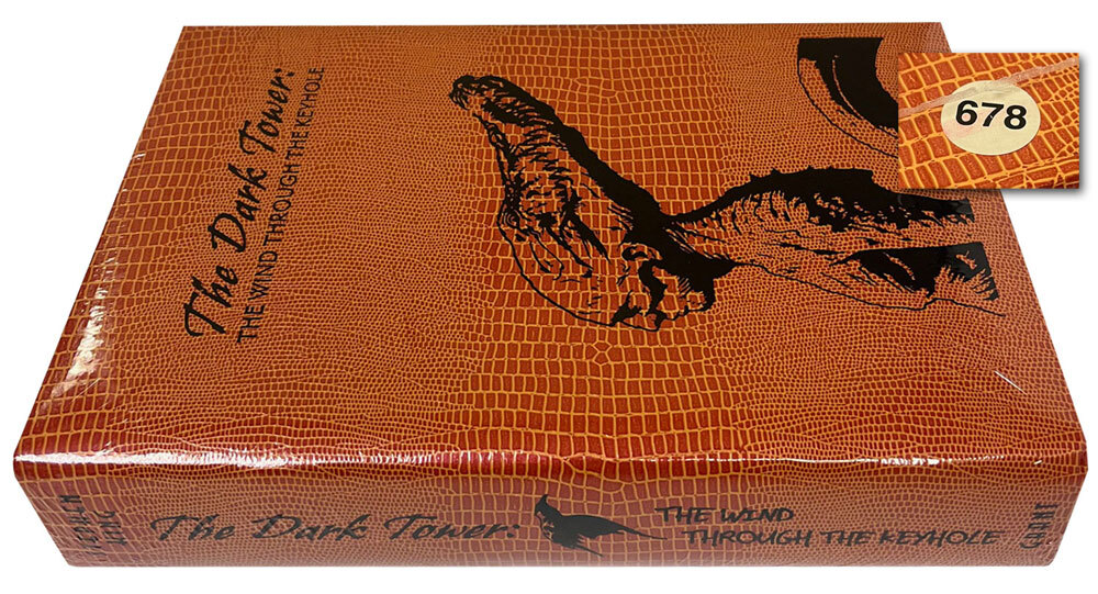 Donald M. Grant Publishers 2012. Stephen King "The Wind Through The Keyhole". Signed Limited Edition No. 678 of 800. Limited edition of 800 copies complete with foil stamped tray-case. Numbered and signed by Stephen King along with the illustrator Jae Lee. Sealed. Very Fine without any flaws. Original number sticker.