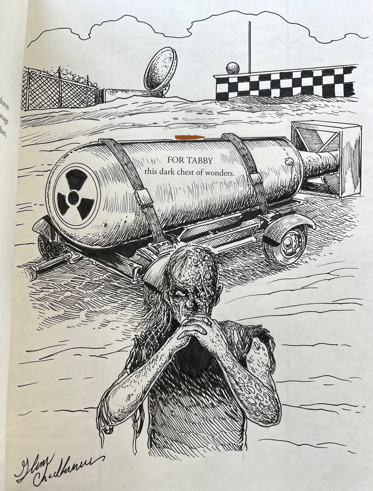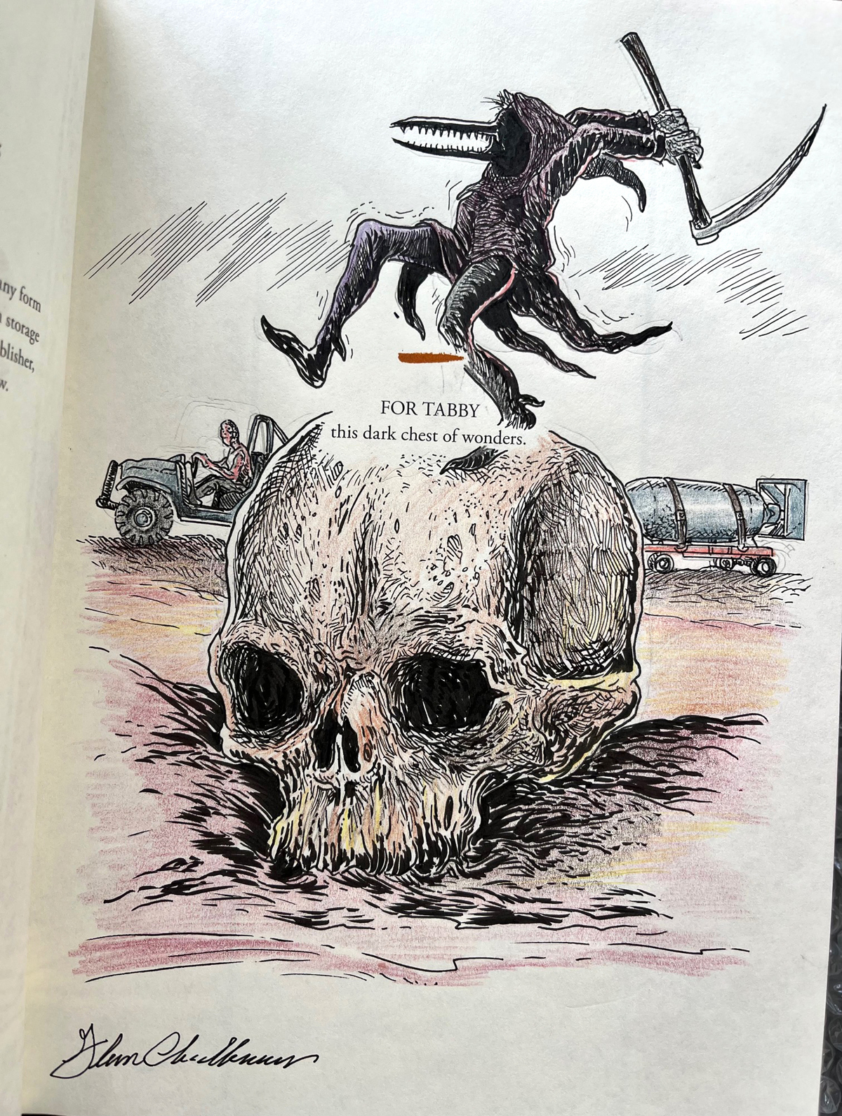 Collector's Note: This book is not signed by Stephen King. It is signed by Glenn Chadbourne, who has created an original piece of artwork directly onto the dedication page of the book.