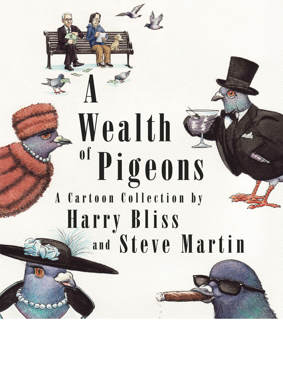 So writes the multitalented comedian Steve Martin in his introduction to A Wealth of Pigeons: A Cartoon Collection. In order to venture into this lauded territory of cartooning, he partnered with the heralded New Yorker cartoonist Harry Bliss. Steve shared caption and cartoon ideas, Harry provided impeccable artwork, and together they created this collection of humorous cartoons and comic strips, with amusing commentary about their collaboration throughout. The result: this gorgeous, funny, singular book, perfect to give as a gift or to buy for yourself.