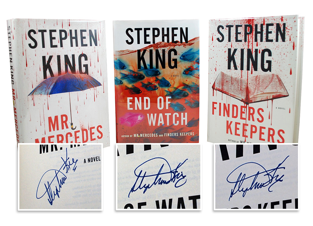 - Lifetime Guarantee of Signature Authenticity. Each one of the first printings of the Bill Hodges Trilogy has been personally signed by Stephen King. The autographs are not facsimiles, stamps, or auto-pens. Includes three COAs, one for each book.